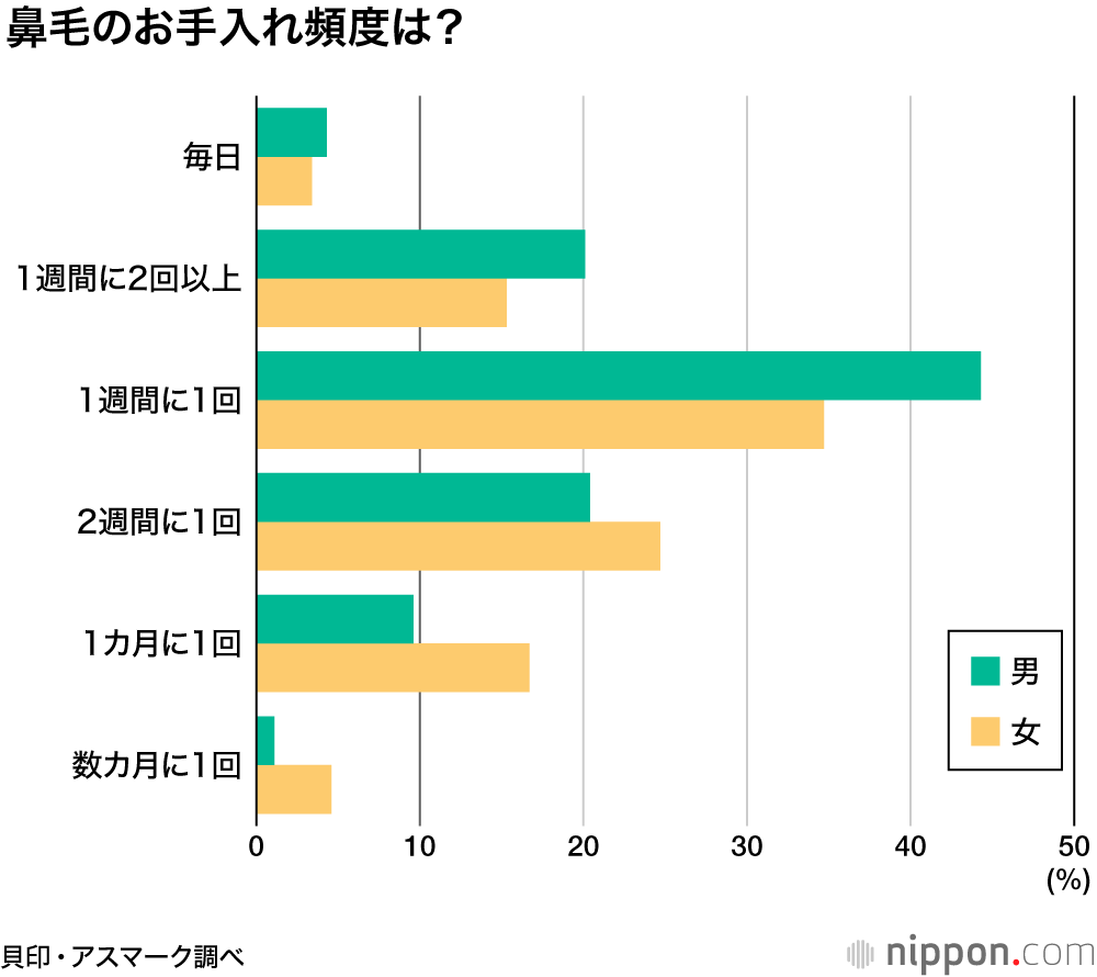 鼻毛出てると魅力減!: 男性の7割は週1回以上のお手入れ