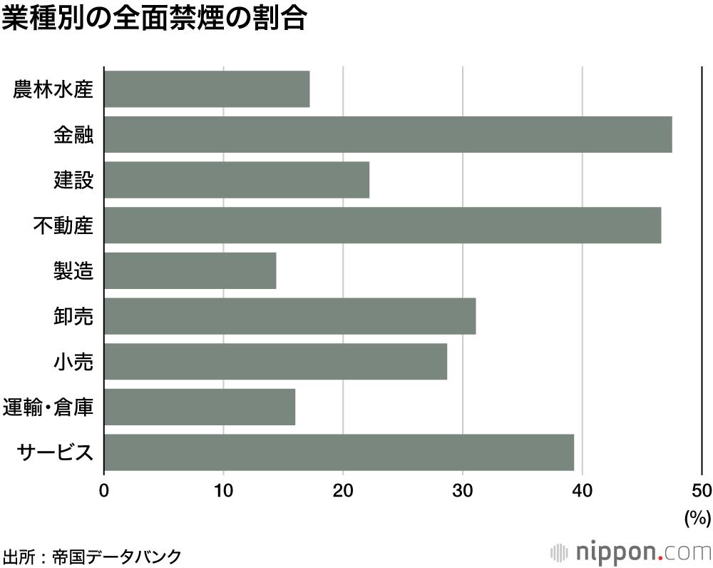 26%が全面禁煙、半数超が完全分煙 : 改正健康増進法への企業の対応