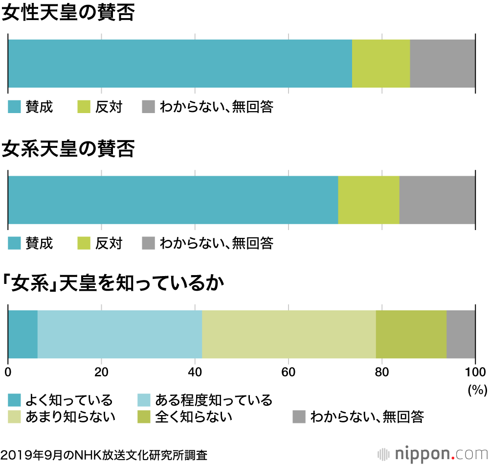 調査は、NHK放送文化研究所が2019年10月22日の「即位礼正殿の儀」を前にした9月の2日間に、電話で実施した。全国の男女2790人が対象で、このうち55.2%にあたる1539人から回答を得た。(続く数値はいずれも小数第一位を四捨五入したもの)