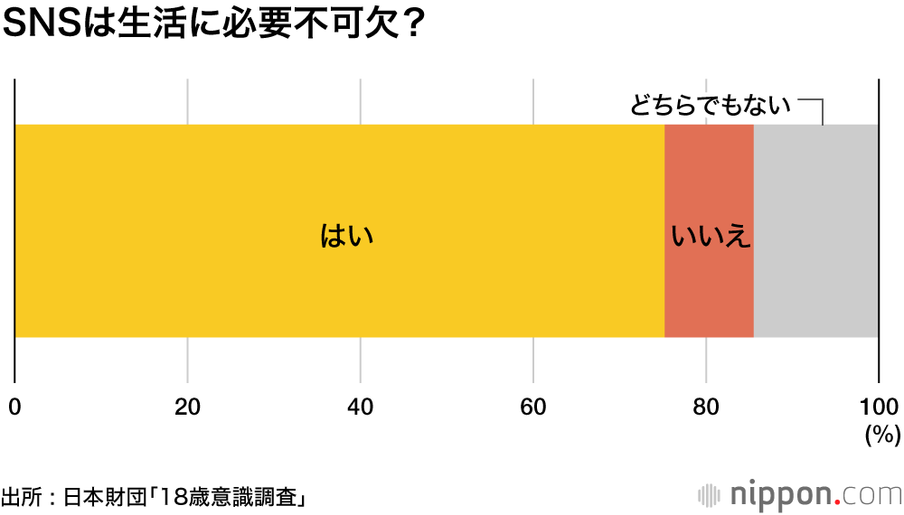 日本財団が17~19歳の男女1000人を対象に実施したインターネット調査で、「SNSを利用している」「利用していた」の合計が94%だった。今や、SNSは生活必需品とも言える存在だ。