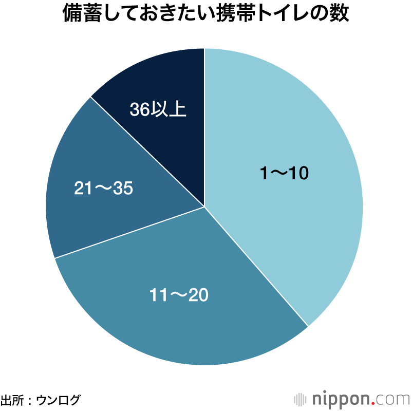 また、「災害の備えとして用意しておきたい携帯トイレの数」を聞いたところ、「1~10回分」と答えた人が4割近かった。上下水道インフラの被害や支援物資の到着の遅れなどを考慮して、1週間分程度の携帯トイレを備蓄することが推奨されている。1人当たりの平均的なトイレ使用回数は1日5回程度とされているので、7×5=35回分となるが、これに見合う十分な量を備蓄している人は、わずかに12.7%だった。