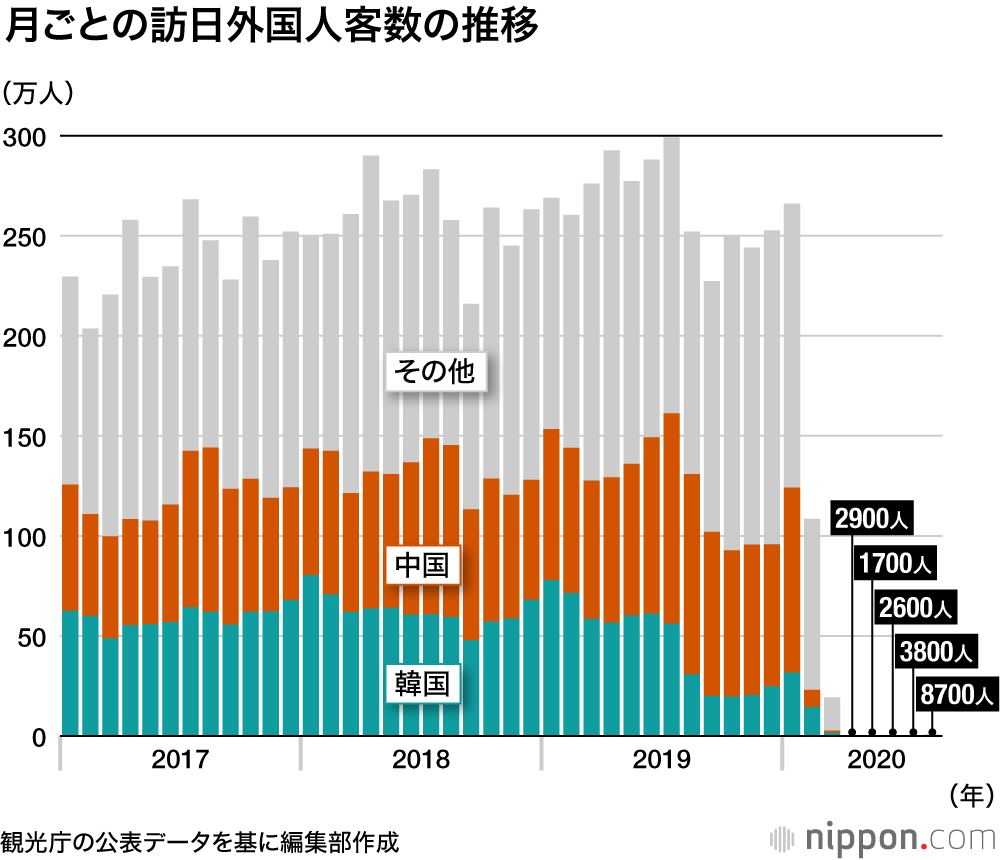 8月の訪日外国人は99%減の8700人 : コロナ禍続き、反転遠い