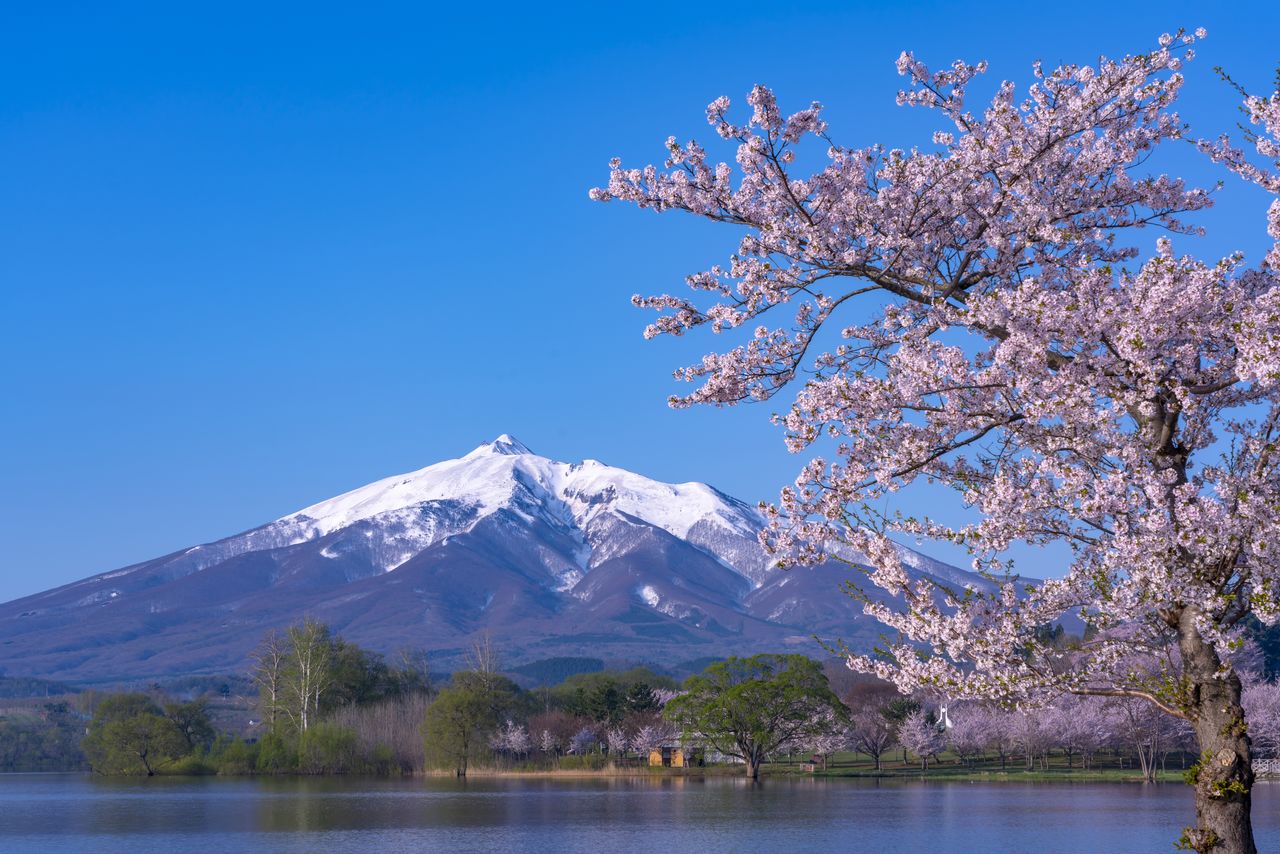 津軽平野の南西部にある二重式火山で、青森県の最高峰。古くから山岳信仰が栄え、地元の人たちからは「お岩木山」「お岩木様」と親しみを込めて呼ばれる。