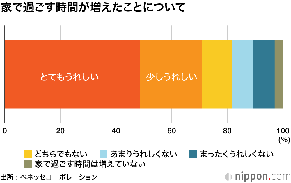 コロナが流行する前と生活がどのように変わったか聞いたところ、テレビを見たり、読書したりする時間は約7割増加。自宅学習も約6割で増加した。家で過ごす時間が増えたことについて、約7割が「とてもうれしい」「少しうれしい」と回答。ここからも、柔軟に変化に対応する様子が読み取れる。