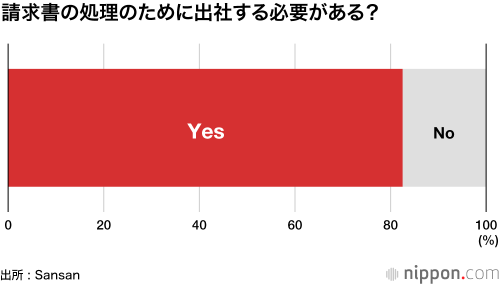 テレワークの阻害要因? : 「請求書処理のために出社」8割