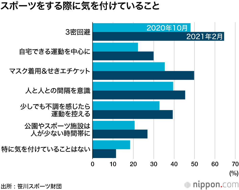 コロナで運動しなくなった―笹川スポーツ財団調査 : 第3波で一段と注意深く