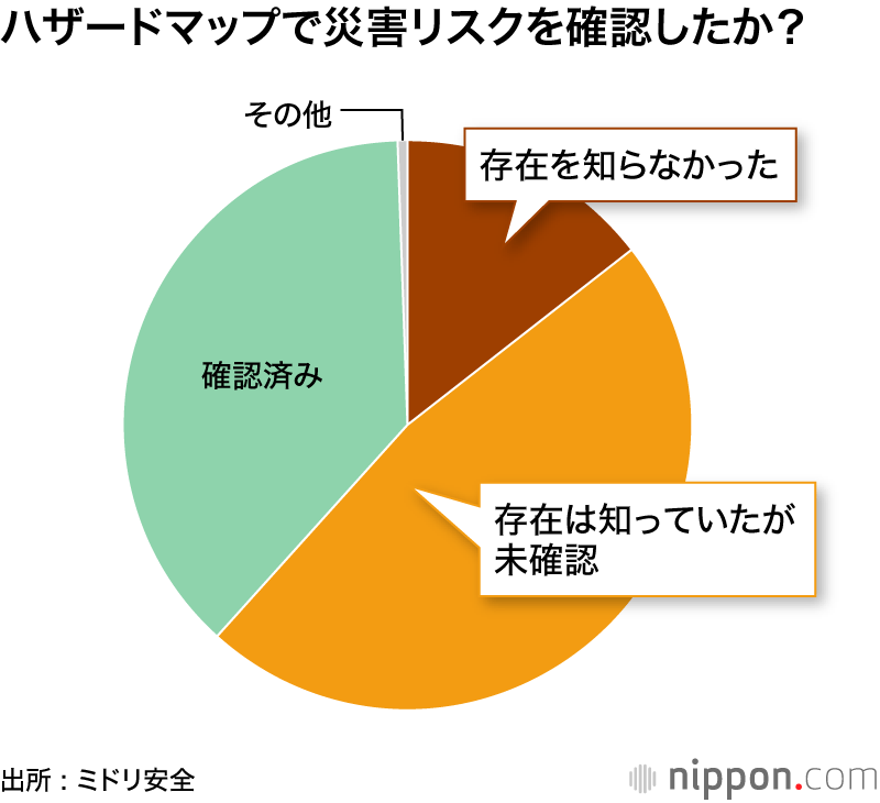 国土交通省や自治体などが公開している、自然災害などによるリスクを地図化した「ハザードマップ」を見たこがあるか聞いたところ、「確認して、リスクを知っている」と答えたのは37.9%にとどまり、6割以上が「存在を知らなかった」「存在は知っていたが、見たことはない」と回答。事前の避難対策などに十分に活用されていない実態が明らかになった。