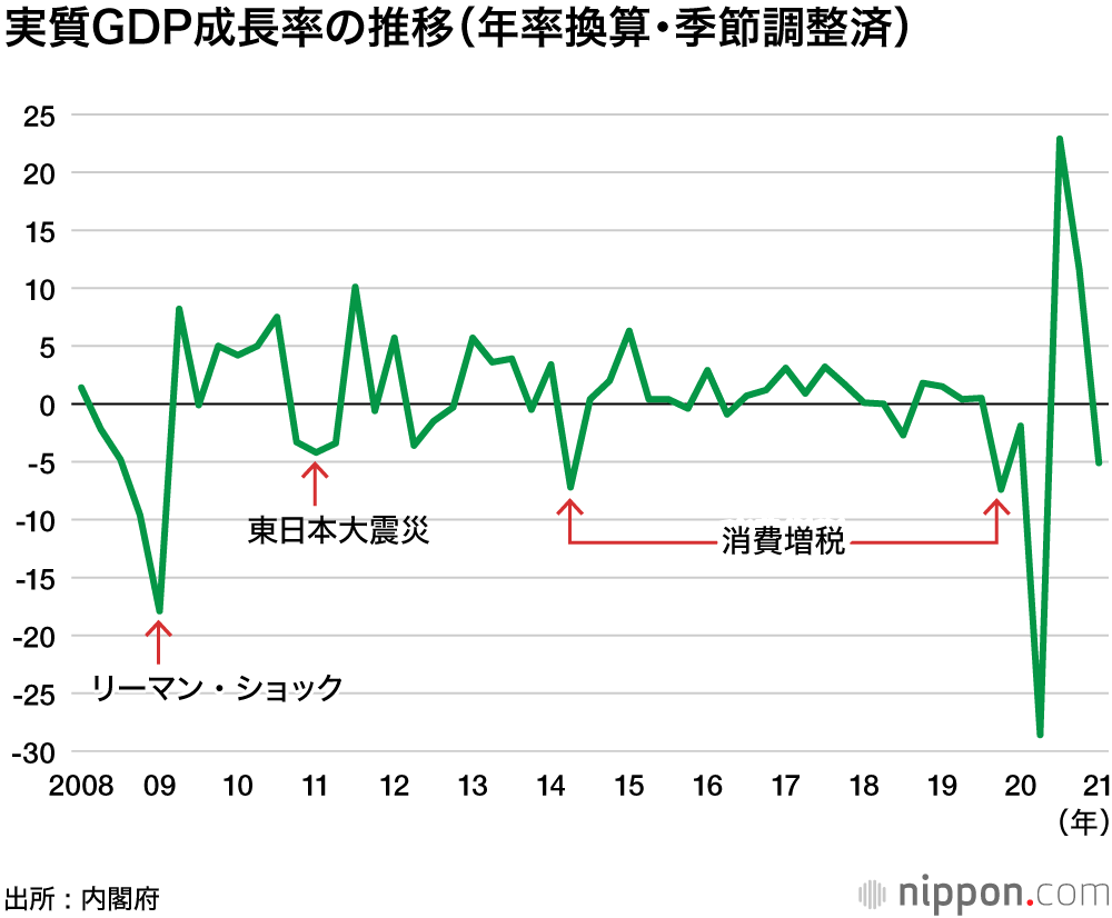 GDP、戦後最悪4.6%減―20年度 : コロナ自粛モードで個人消費冷え込む