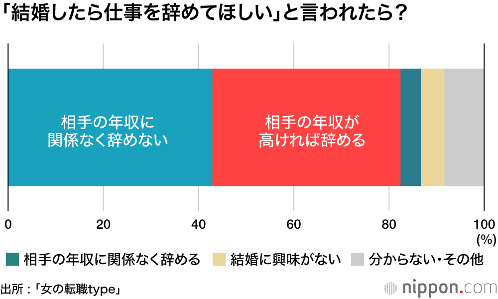 相手の年収に関係なく「仕事は辞めない」42.9% : 愛だけじゃなくて、お金も大事―女性の結婚観