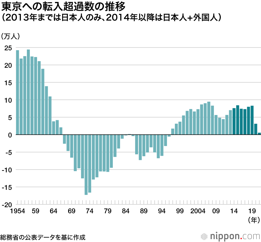 東京圏への一極集中に変化の兆し? : 都内への転入超過鈍る、23区は転出超過