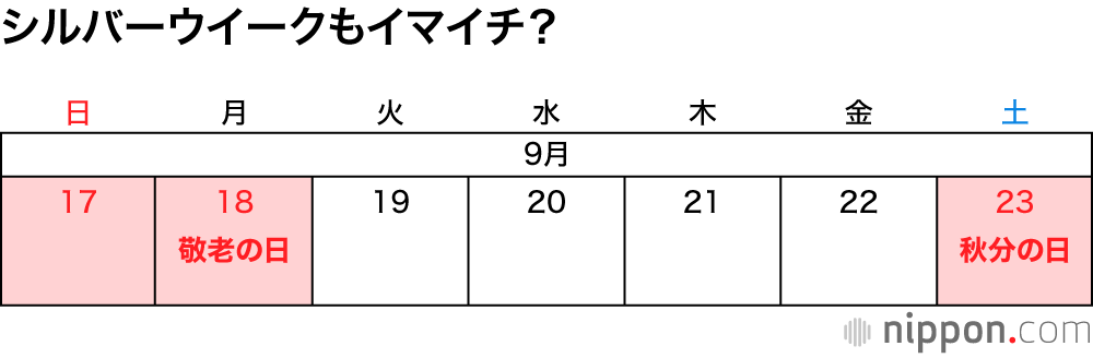 敬老の日は「9月第3月曜日」と決まっていて、3連休が約束されている。2023年の「秋分の日」は土曜日なので祝日を1日損した気分。シルバーウイークはいまいち盛り上がらず。