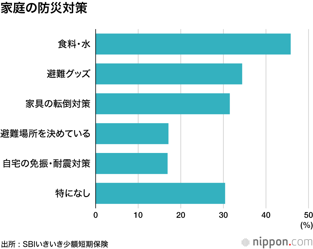 防災対策 : 「地震への不安」56.7%なのに、「特に対策していない」30.4%