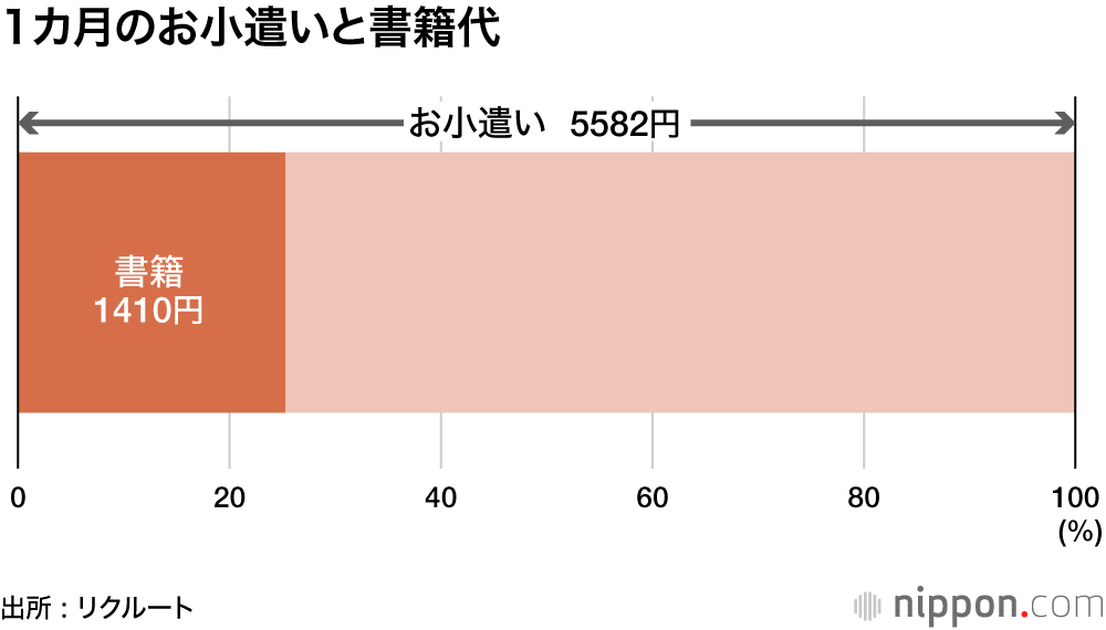 毎月、書籍に使う金額の平均は1410円。スタディサプリが6月に実施した調査で、高校生の1カ月の平均お小遣い額は5582円だったので、約4分の1を読書のために使っていることになる。
