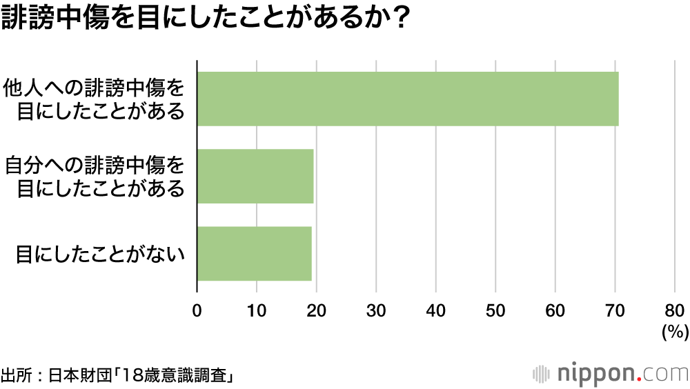 インターネット上の誹謗(ひぼう)中傷対策を強化するため、2022年6月に侮辱罪の法定刑の上限が引き上げられた。日本財団は「18歳意識調査」として、全国の17歳~19歳計1000人に日々接するインターネット上での誹謗中傷について聞いた。