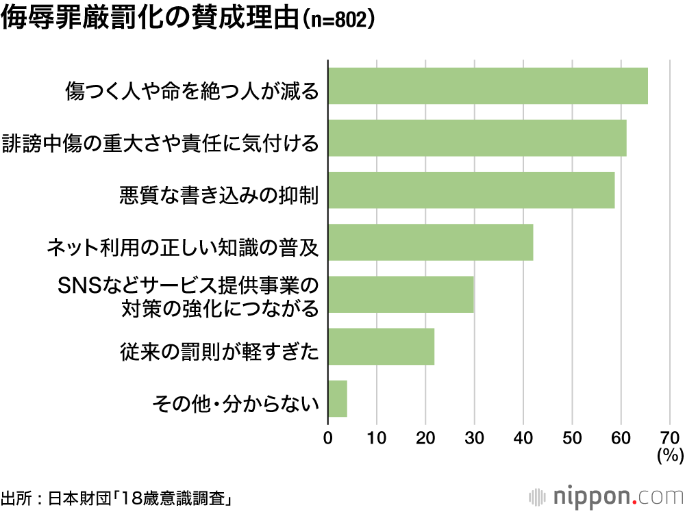 侮辱罪の厳罰化8割が賛成―18歳意識調査 : 「ネットで誹謗中傷を書き込んだ経験ある」は約2割