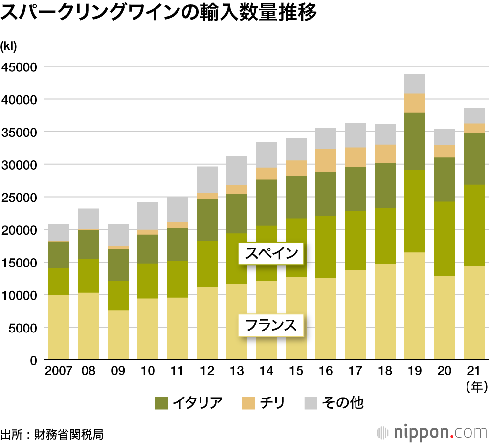 一方、スパークリングタイプはフランスとスペインがきっ抗している。スペインのカタルーニャ州を中心とした地域で生産されるカヴァは、フランスのシャンパンと同じ製法だが、シャンパンよりも割安なため、「家飲み」など手軽な日常使いに人気だ。