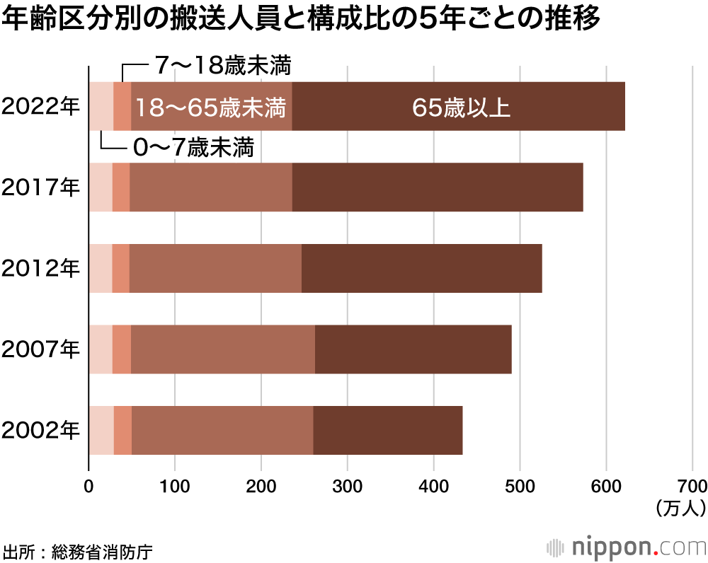 救急出動過去最多―2022年 : 高齢化で搬送需要増加、初の700万件超