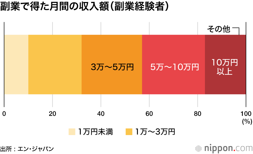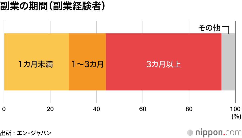 副業期間3カ月以上、月の副業収入3万~10万円―人材サービスのエン・ジャパン(東京新宿区)が派遣型アルバイト求人サイト「エンバイト」のユーザー約2500人を対象に実施した調査で、副業の実態が浮かび上がった。