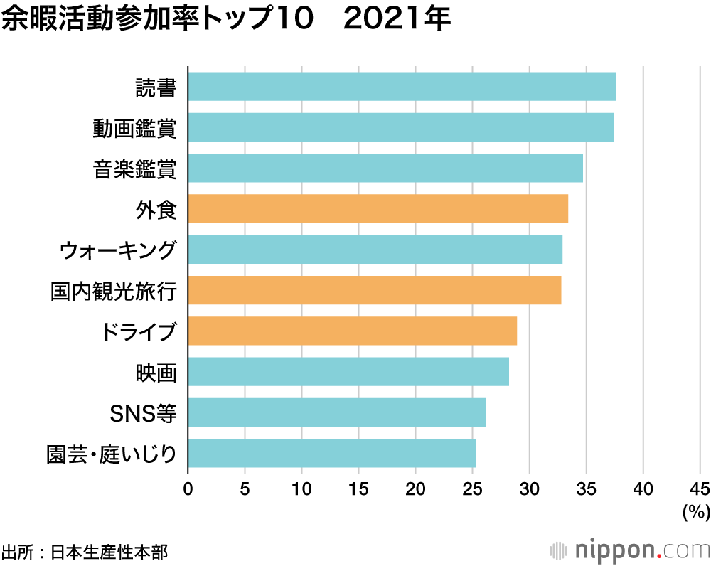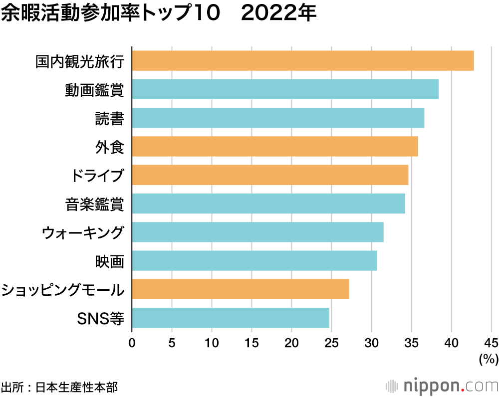 余暇時間、「国内旅行」が3年ぶり首位返り咲き―日本生産性本部 : 外食、ドライブなど活動的に
