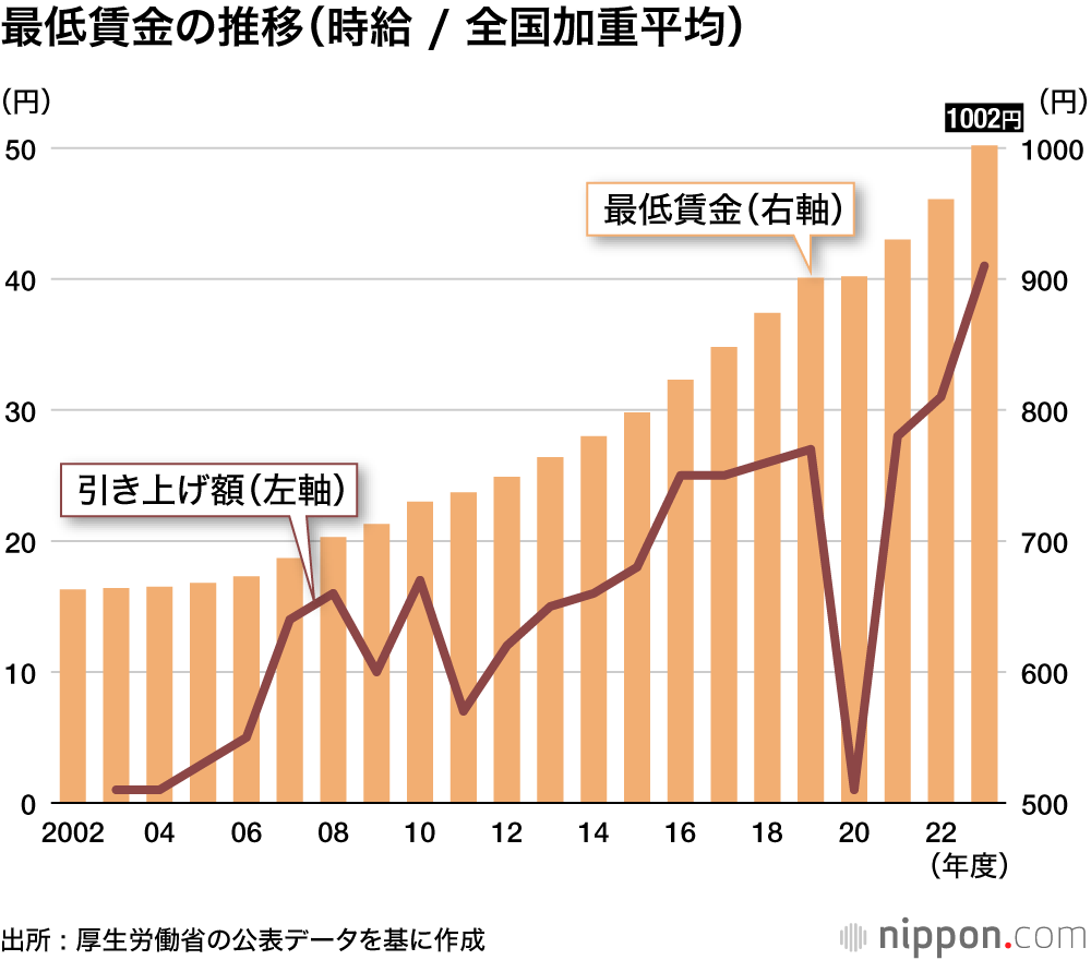 最低賃金1002円に―首相意向反映し、初の大台越え : 過去最大の41円引き上げ