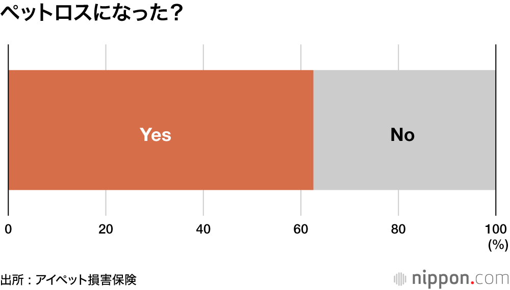 アイペット損害保険(東京都江東区)が、ペット(犬・猫)を亡くした経験があり、現在はペットと一緒に暮らしていない1000人を対象に実施した調査で、「自分自身や家族がペットロスになった」人は、全体の62.3%だった。