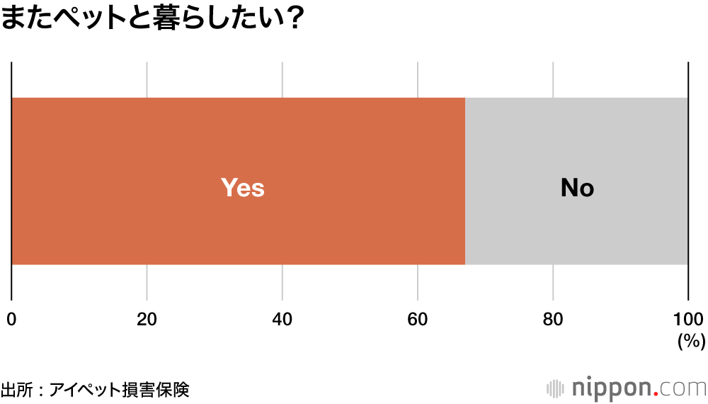 「機会があればペットと一緒に暮らしてみたいと思うか」との問いに対して、67%の人が「暮らしたい」と回答。失う悲しみを知っても、ペットと過ごす時間の尊さをもう一度、味わいたい人が多いようだ。