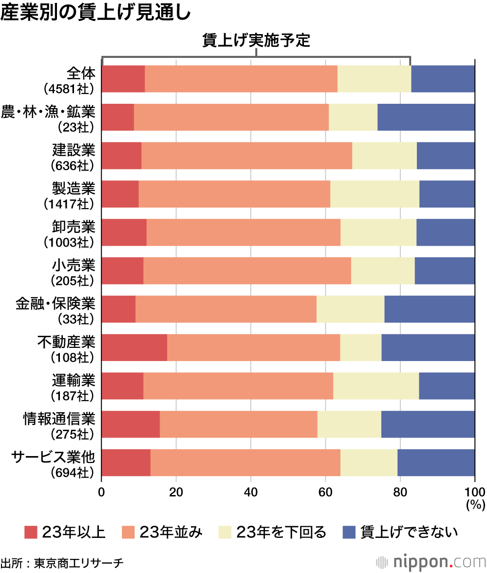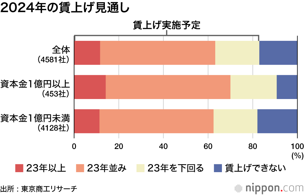 2024年、8割の企業が賃上げ予定―東京商工リサーチ調査 : 23年超えも1割程度に