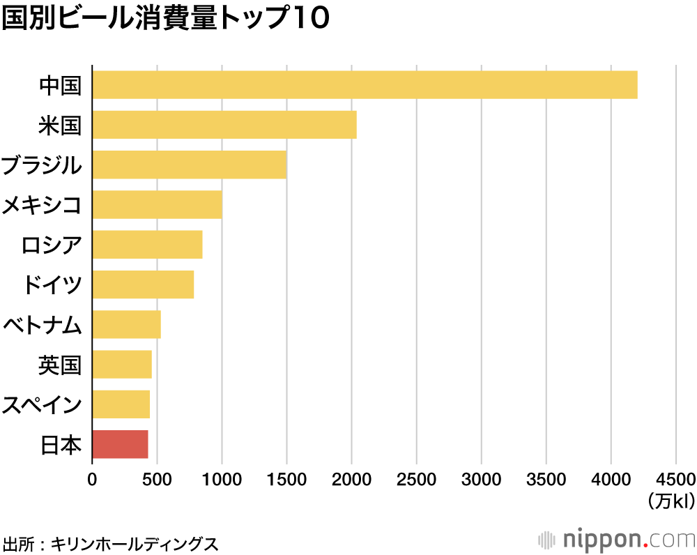 世界のビール消費、東京ドーム155杯分―2022年 : 日本は10位に後退―キリン調べ