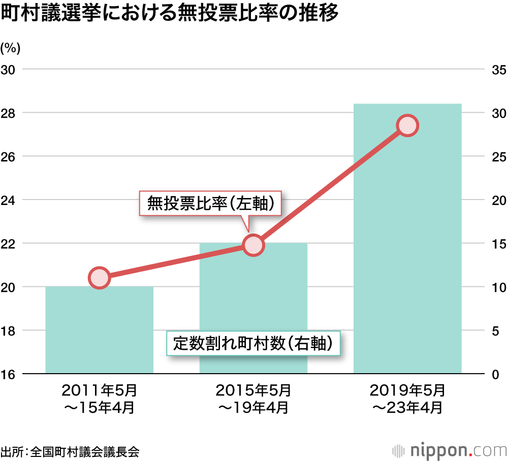 町村議会選挙27%が無投票 定数割れも進み、地方自治が危機に