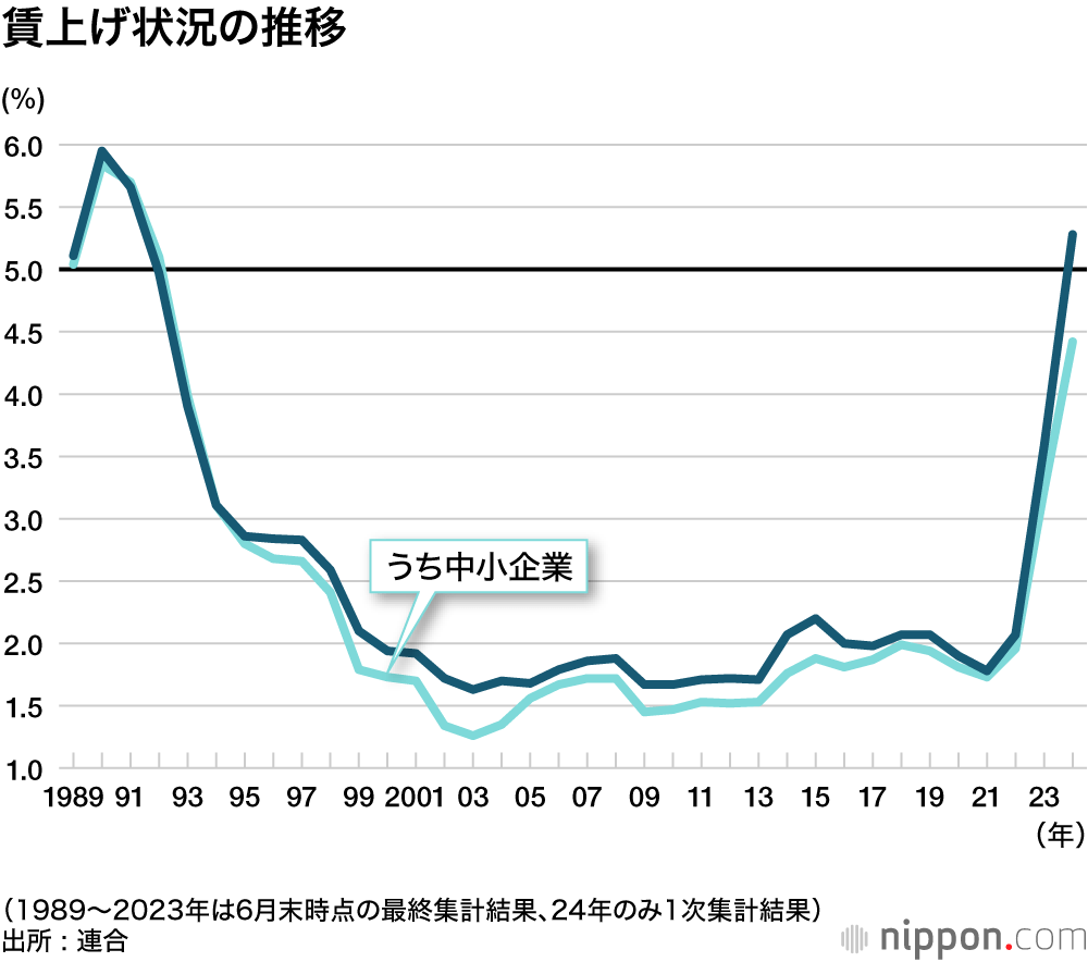 春闘賃上げ5.28%―連合1次集計 : 33年ぶりの高水準