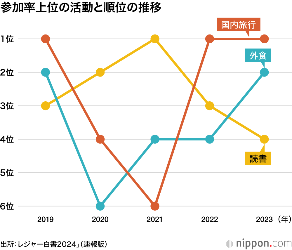 国内旅行と外食が「2023年に行った余暇」1、2位:コロナ禍脱し、外の活動が順位上げる―レジャー白書