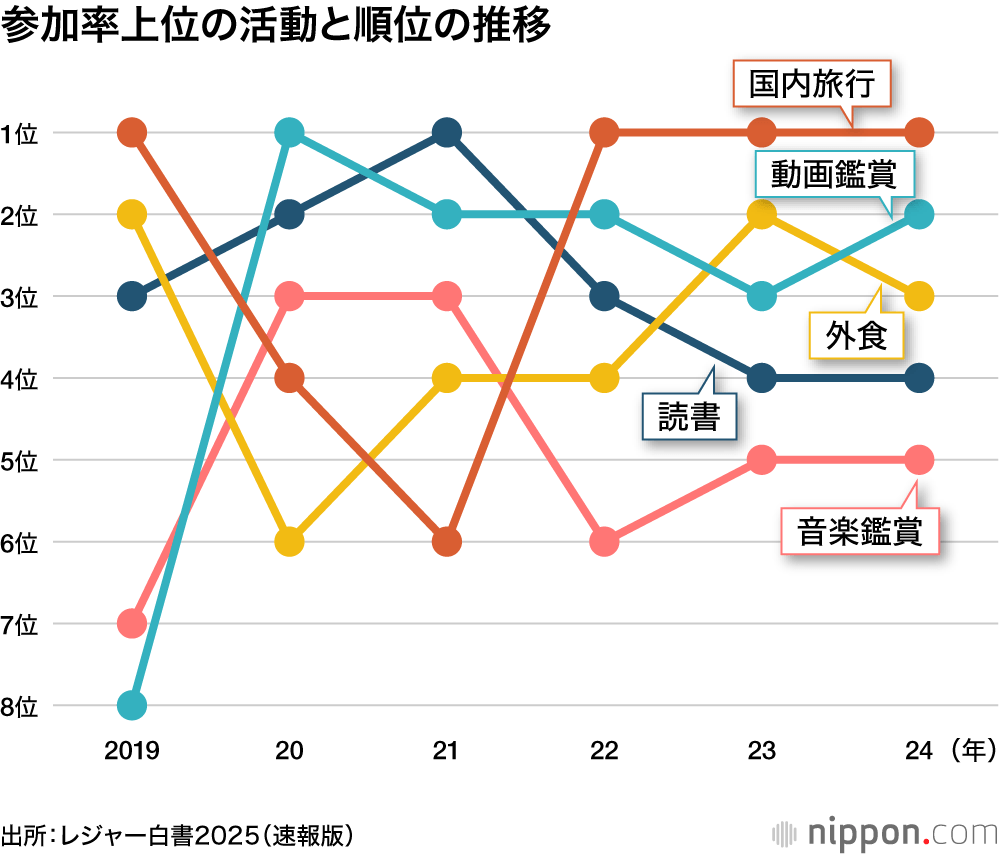 国内旅行と動画鑑賞、外食が「2024年に行った余暇」ベスト3―レジャー白書