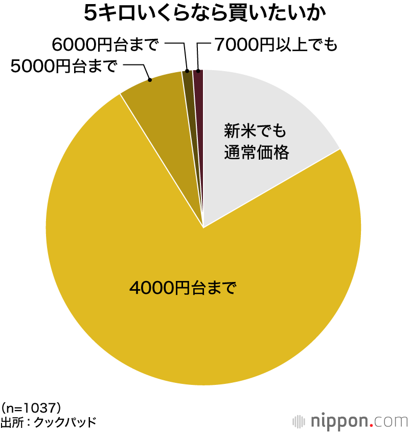 ただし、「5000円台まで」「6000円台まで」「7000円以上でも」は合わせても8.7%と少数派。消費者心理に「新米は食べたいけれど、5000円以上は出せない…」といった“5000円の壁”が立ちはだかっていることが分かった。