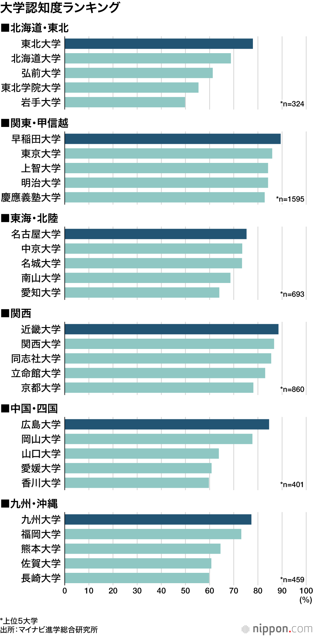 【大学認知度ランキング】関東・甲信越は早稲田大が1位 関西の近畿大は4年連続トップ