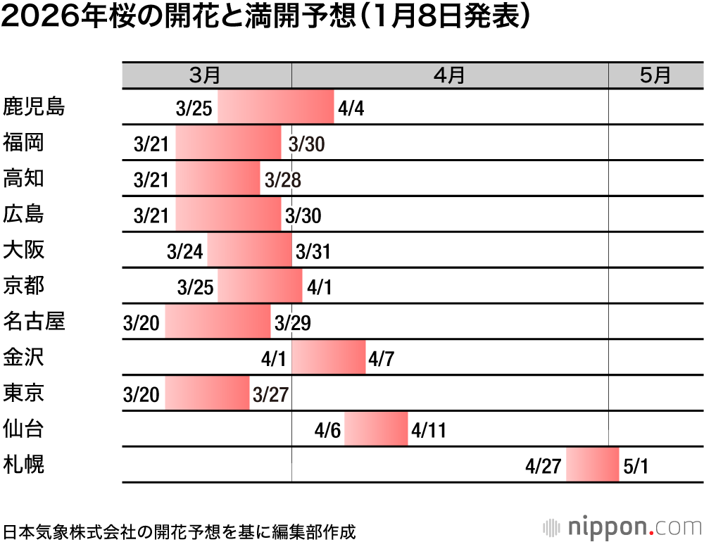 - 日本気象「2026年の桜の開花・満開予想」