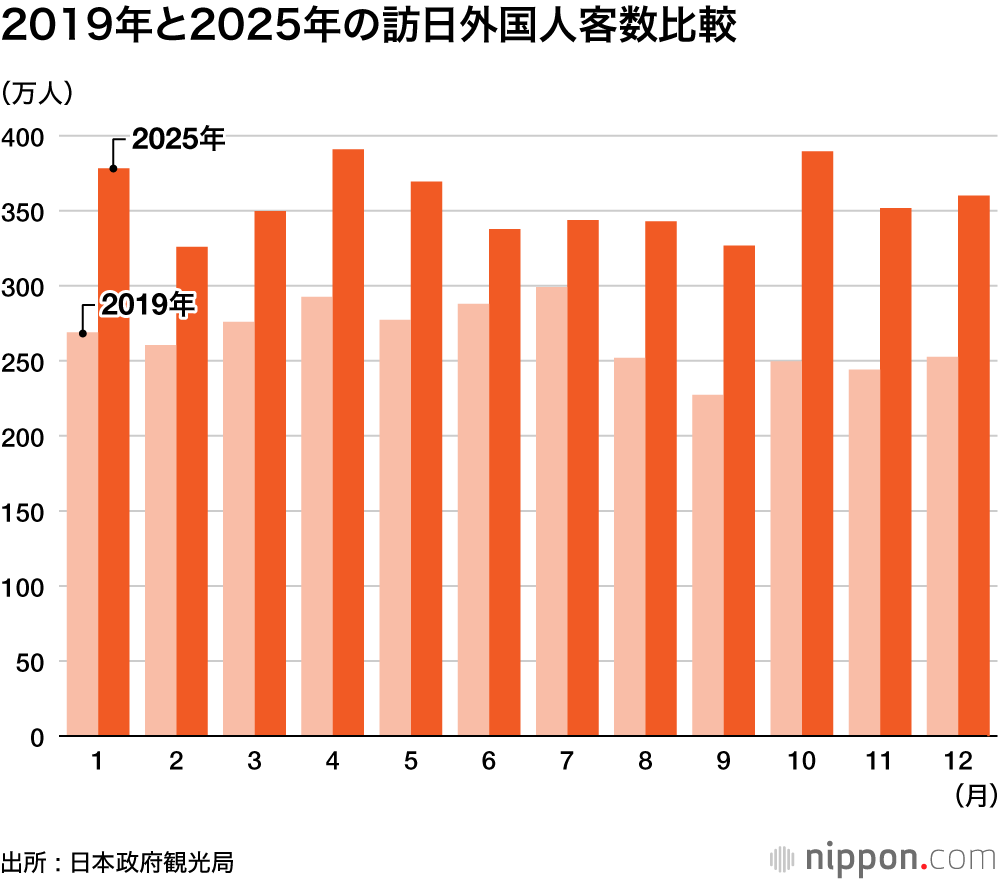 訪日外国人、初の4000万人突破―消費額は9.5兆円 : “台湾有事” 発言で12月の中国急減