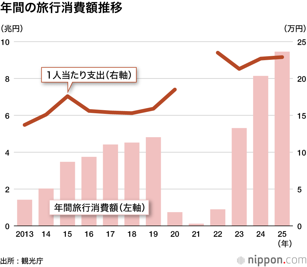 訪日旅行消費9.5兆円―過去最高更新 : 1人あたり旅行費用は22.9万円