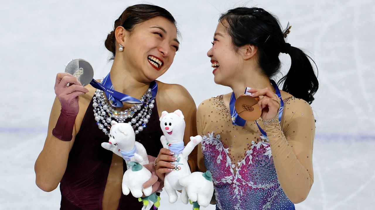 バナー写真:ミラノ・コルティナ冬季五輪のフィギュアスケート女子シングル表彰式で笑顔の(左から)銀メダルの坂本花織、銅メダルの中井亜美=ミラノ=2026年2月19日(ロイター)