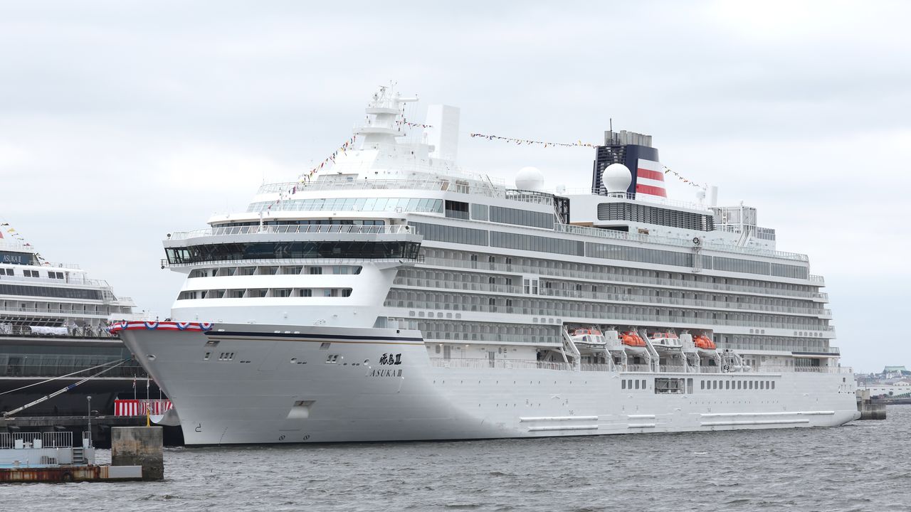 バナー写真:郵船クルーズの新造客船「飛鳥Ⅲ」=2025年7月11日、横浜市中区(時事)