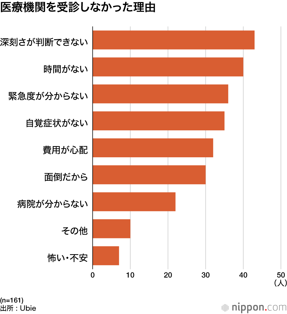 C判定・D判定を受けた368人のうち、医療機関を受診したのは207人にとどまり、161人は判定後も未受診。その言い訳は、「深刻さが判断できない」「時間がない」「緊急度が分からない」。