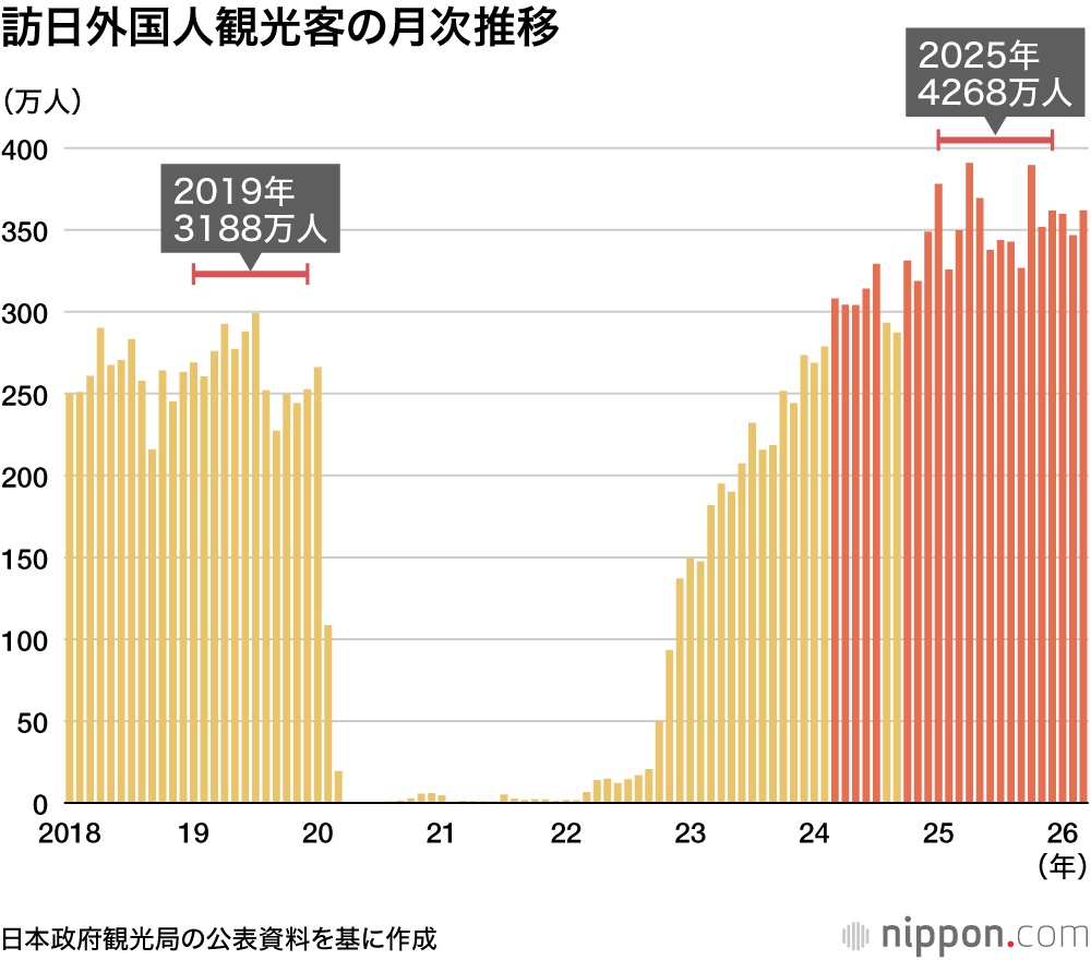 - 日本政府観光局「訪日外客数(2026年3月推計値)」