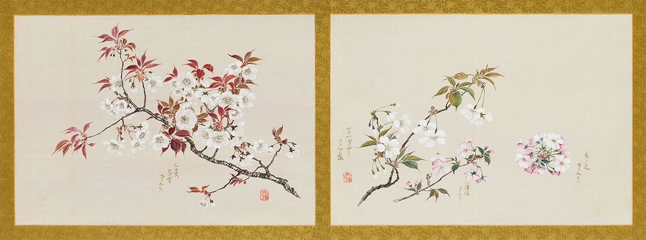 希少な40種類以上の桜が25面に描かれた12メートルの画帖(がじょう)、跡見玉枝『桜花図巻』(部分)