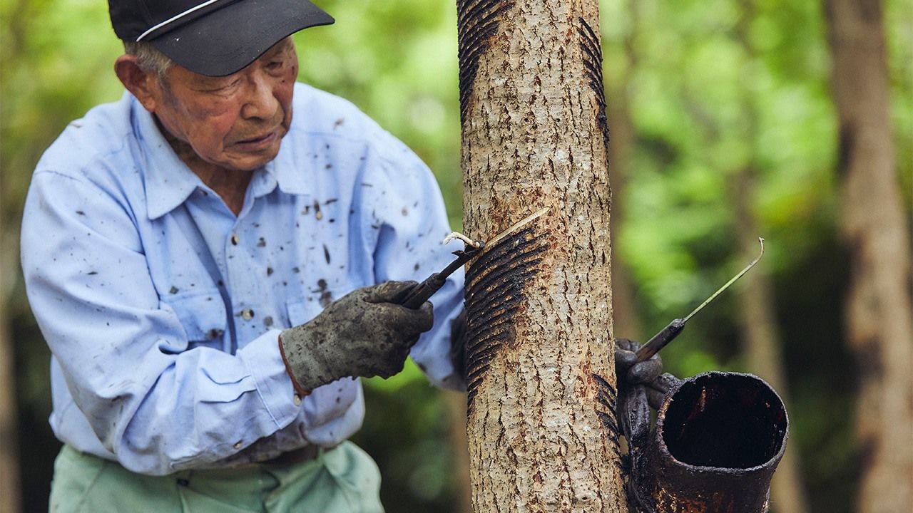 バナー写真=漆の樹液を採取する漆掻き職人の飛田祐造氏(撮影=乙咩海太)
