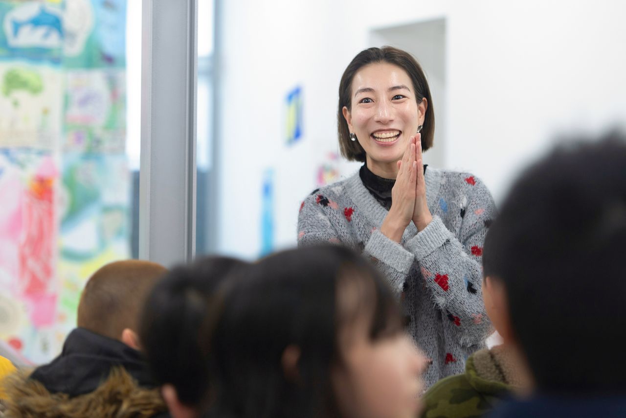 さくら学級の児童に語り掛ける山本さん 撮影:ニッポンドットコム編集部