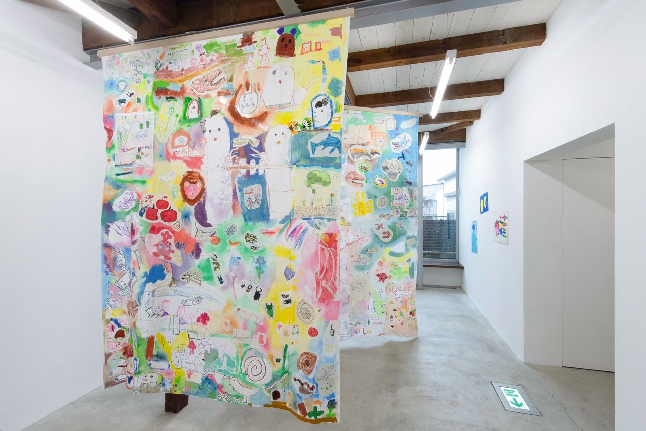 みずのき美術館の1階奥に展示されていた2作品。子どもたちの個性が響き合う