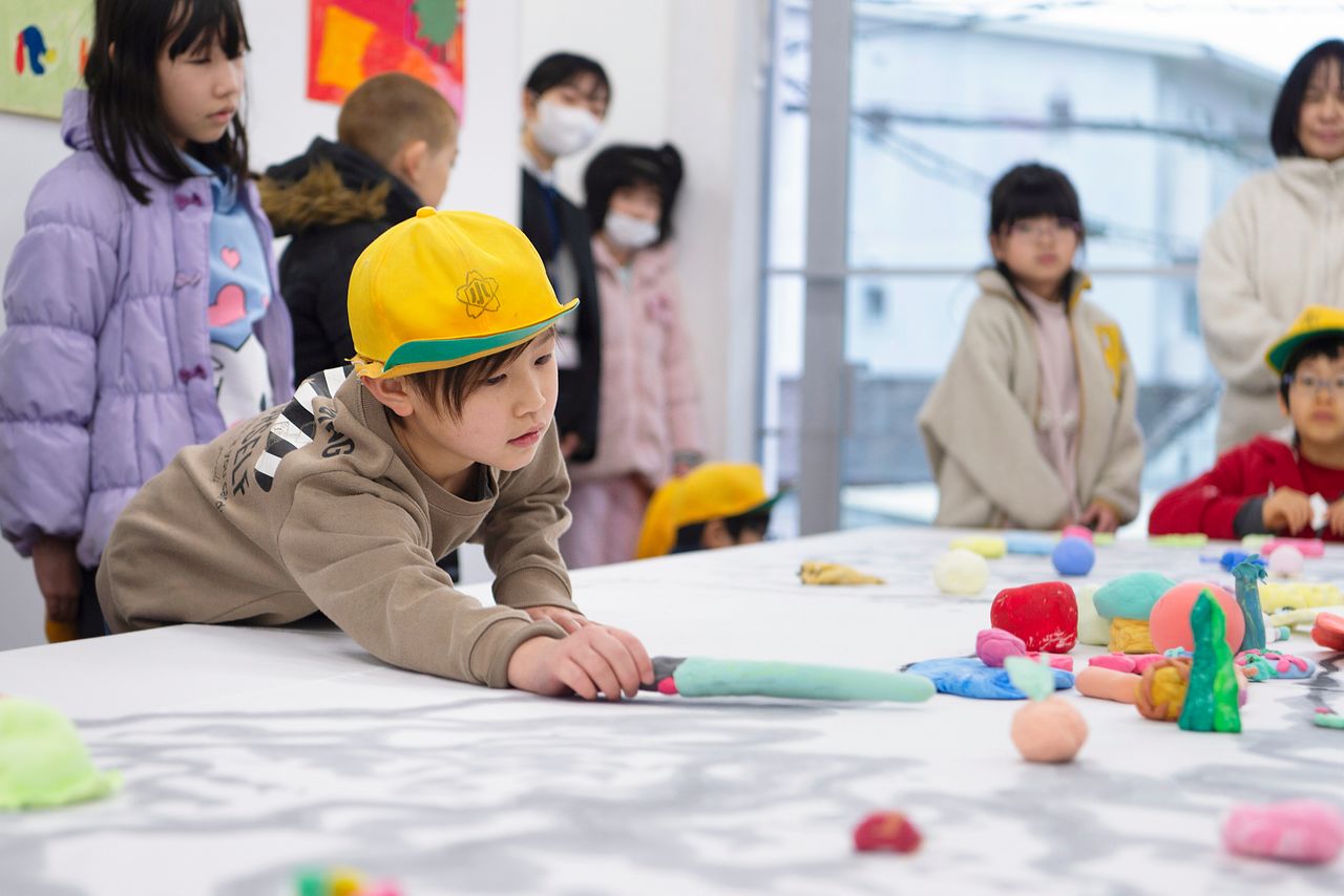 子どもたちが粘土細工の「木の心」の位置を変えてしまうのもご愛嬌(あいきょう)。作家自身だからこそ許される行為だ