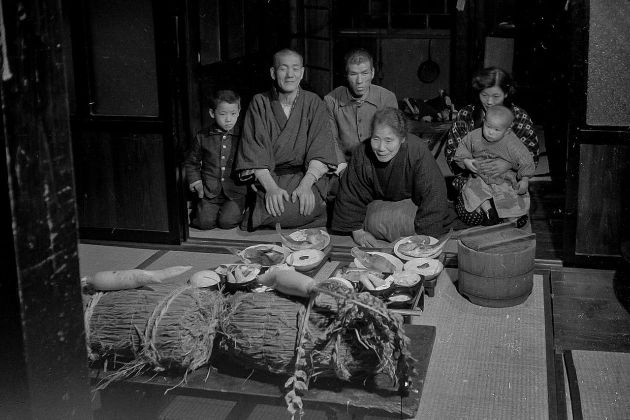 お供えは一家でお下がりにあずかる(芳賀日出男撮影)