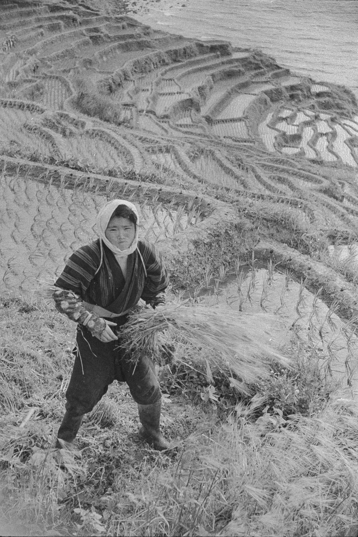 1953年当時の輪島・白米千枚田(しろよねせんまいだ)の農耕風景(芳賀日出男撮影)
