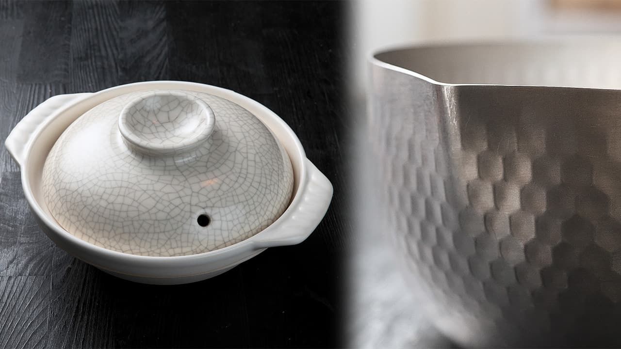 ご飯を炊くには、普通の土鍋より肉厚な炊飯専用がおすすめだという。土鍋は温度上昇が緩やかだが、沸騰後の高温が長く保持できるので短時間で炊ける。「これは炊飯10分・蒸らし10分。とにかく早いし、やっぱり土鍋で炊くとおいしいですよ」