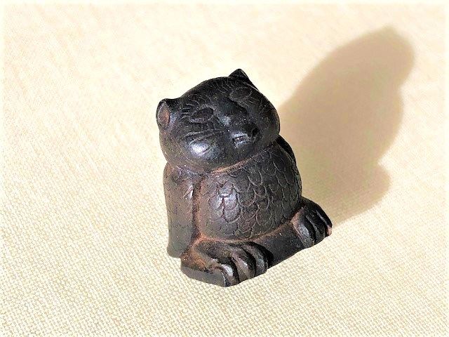 木彫りの「猫フクロウ」(高さ約2.2cm、1992年4月25日、ミャンマーの古都パガンで評者購入)